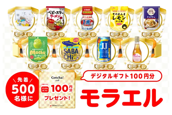 「モラエルガッチャ! 」みなさんPLAYしてますか?モラエルガッチャ!は、4月から新たなサービスにリニューアルを予定しております、新たなサービスもいろんな商品をみなさんにどんどんご紹介していく予定です。お楽しみに! 今月も、ガッチャ!デー期間中に「スタンプチャレンジ」を開催!スタンプを集めると先着でデジタルギフトがモラエル!詳しくは↓のバナーをタップ。どんどんPLAYして商品とデジタルギフト両方GETしよう! ガッチャデー開催期間の5日間連続で、ガッチャ!モール内のいずれかのガッチャ!を1回以上PLAYした方を対象に、選べる海鮮ギフトカードが当たるごほうびガッチャ!を用意いたしました!! いつもよりたくさん回せるガッチャ!デーでを毎日PLAYしておいしい海鮮をGETしよう。 ※5日連続PLAY該当者には、翌月上旬を目処にごほうびガッチャのご案内をお送りいたします