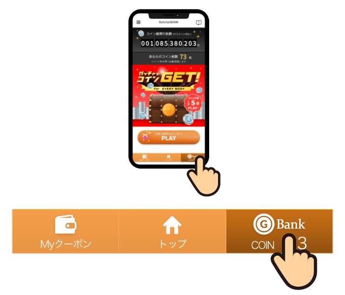 「湯学のスゝメ」ガッチャ!をプレイするにはコインが必要です。コインが不足した場合は、画面下部メニューの「Bank」からコインガッチャ!をプレイして、コインを手に入れてください。
