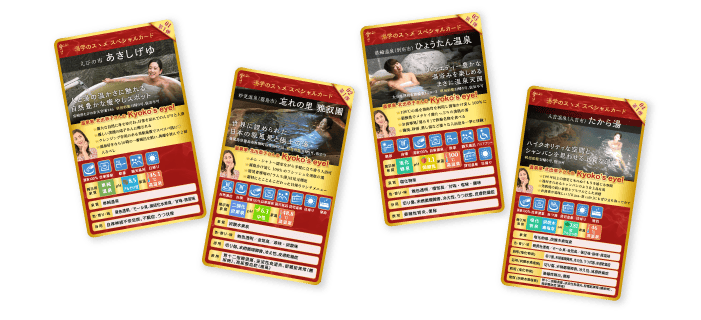 おすすめの温泉地が紹介されている、コレクションカードです。「クイズカード」とは違い、クイズ機能はありません。